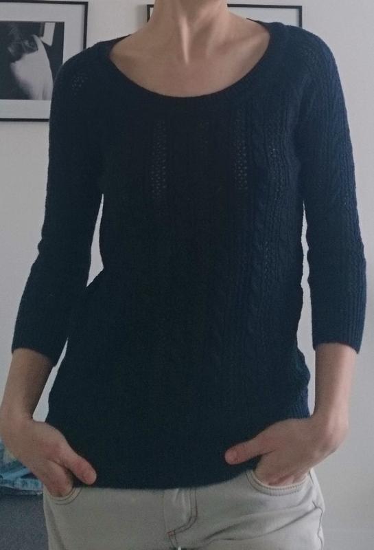 Джемпер с круглым вырезом и укороченным рукавом, размер XS, машинная вязка.