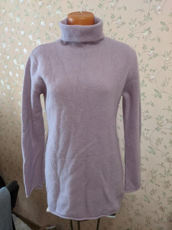 мягусенькая кофта ,шерсть,ангора,любий колір ніжною бузку.На останньому фото маленький нюанс,маленькі дірочки..Від підмишки до підмишки 48(55)см,м,якенька ,тягнеться ,довжина 68см,плечі 38см,довжина рукава від плеча 63см