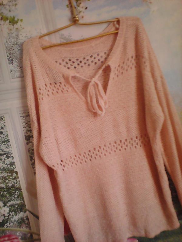 Пудровый джемпер,завязки на спинке ,плечики приспущены, как овер сайз