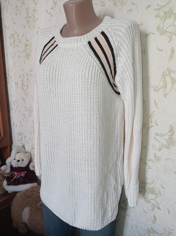 Цвет айвори ! Ширина под мышками 49 см , ширина низ 44 см (по бокам разрезы ), длина по спине 64 см ,рукав от горловины 72 см! Тянется замеры в спокойном состоянии !