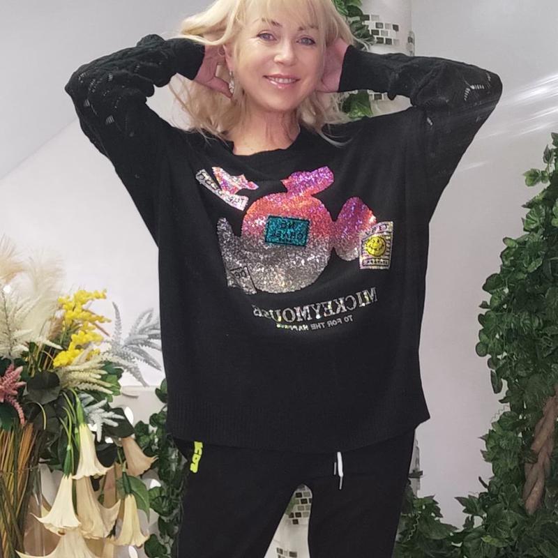 Классный джемпер с яркими кристаллами! Overseas! До объема груди 150 см, длина 68 см.