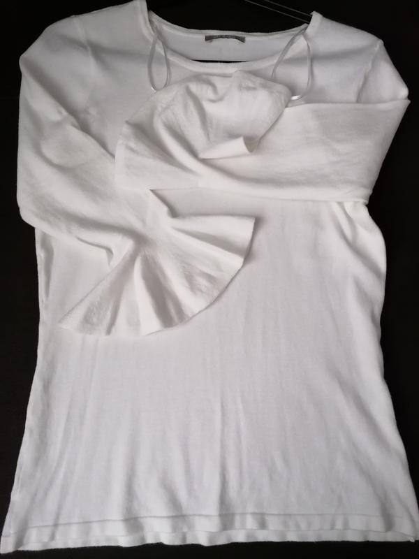 белоснежный джемпер в идеальном состоянии, очень красивый рукав,трикотаж отличного качества. пог-44см,пот-38см,по низу-46см,ширина в плечах-37см,длинапукава-47см,длина -58см