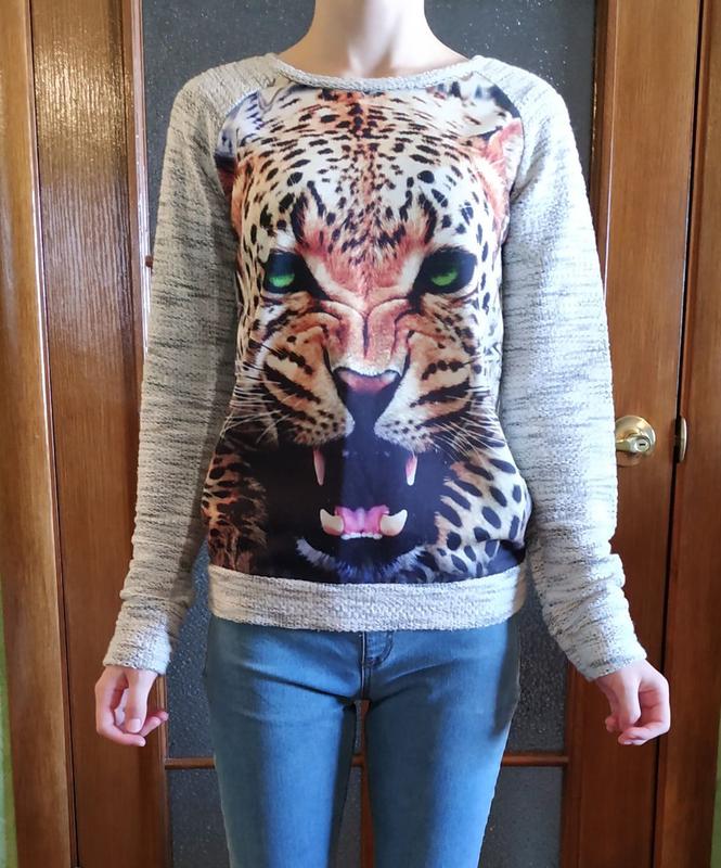 Джемпер серый с принтом леопарда, состояние отличное Длина 56 см Полуобъем груди 44 см 100% cotton