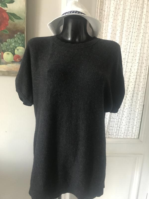 Красивый тепленький джемпер с коротким рукавом отThe white company London. Отличный состав:шерсть-90/, кашемир-10/. Цвет-темно-серый, спущенный короткий рукавчик, горловина-под горлышко . Размер по бирке-S. Замеры:длина-73 см, ПОГ-51 см, ПОБ-49 см.
