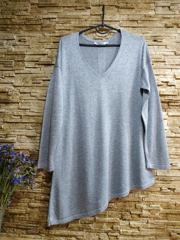 Мягкий и приятный к телу женский джемпер. Одна сторона удлиненная. Отлично тянется. Новое состояние ПОГ-53+ тянется Длина-65-79 Полуобхват по низу-60+ Рукав от горловины-66
