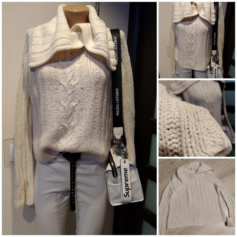 В нормальном состоянии без дефектов и изъянов,хорошо сидит по фигуре,станет незаменимой вещью весной и осенью. очень качественная нить и плетение, модель укороченная без резинок и манжетов, ворот широкий отложной, силуэт прямой, рукава длинные слегка расклешенные к низу, цвет молочно-белый,Степень износа на твердую 4, теплый,уютный, следы носки небольшие кому подойдёт не пожалеете,прослужит Вам долгие годы.фото на теле нет состав и брэнд смотрите на бирке размер заявлен М Длина изделия 50 рукава от горловины 78, ПОБ 52(60) ПОГ 52(60) спинка 40 плечи 42 в скобках указано максимальное растяжение очень качественная и крутая вещь замеры точные Состав: 86%акрил, 14%шерсть