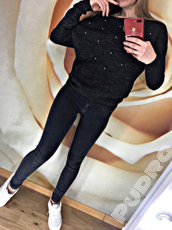 Р.❤️ распродажа ❤️ распродажа ❤️ распродажа❤️ Джемпер с жемчугом Цена 220 грн. Цвет черный Размер 42-44 Фасон - летучая мышь, рукав 3/4 (длина 62 см размер 42), крой свободный, жемчуг белый пришивной (ручная работа)