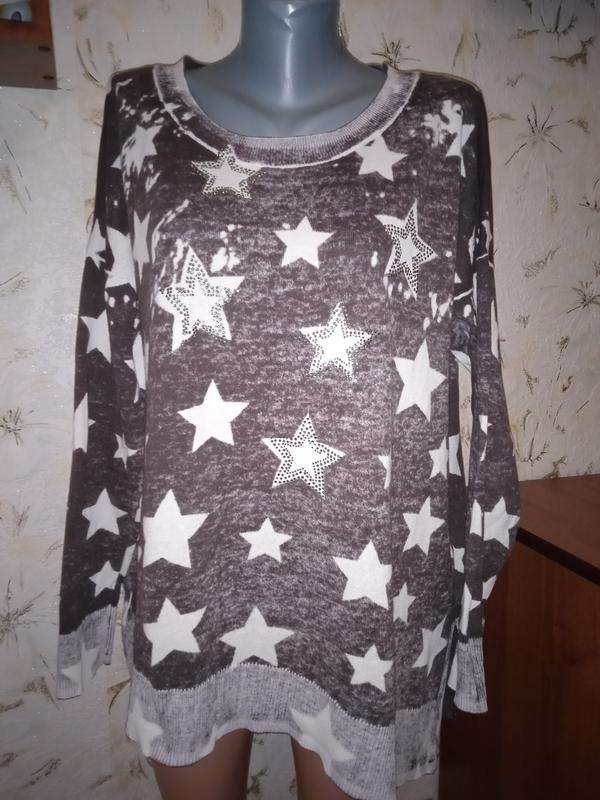 Размер на этикетке евро 44/46, смотрите замеры. Ткань варенка (неравномерный окрас), не плотная, хорошо тянется, 100% хлопок, Цвет основной коричневый, принт белый. Состояние удовлетворительное. !!!!! Есть лёгкая кашлатость, не критично. И вытянут внизу на одну сторону, видно на фото 3. длина от верхней точки плеча к низу 71. длина рукава от горловины 72. п/о бицепса 18 тянется до 23. п/о груди 63 тянется до 73. п/о талии 62 тянется до 72. п/о внизу 64 тянется до 74. 44.