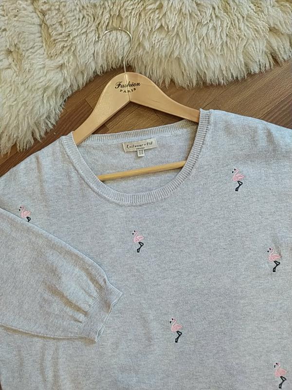 Стильный джемпер с коротким рукавом и декоративной вышивкой в идеальном состоянии.Сток.