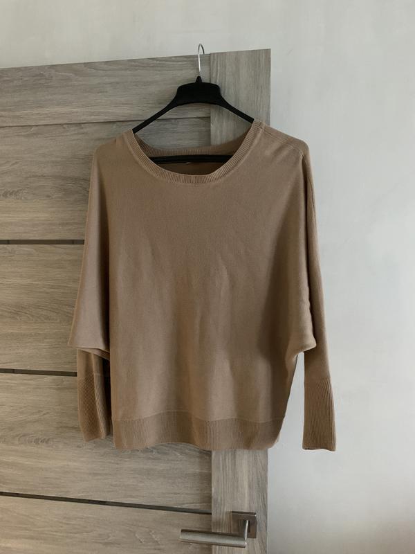Джемпер приємного бежевого кольору (світлий, на фото може здаватися темніше) marks & spencer з широкими рукавами біля плеча, безрозмірний, більше підійде на М або L. В хорошому стані.