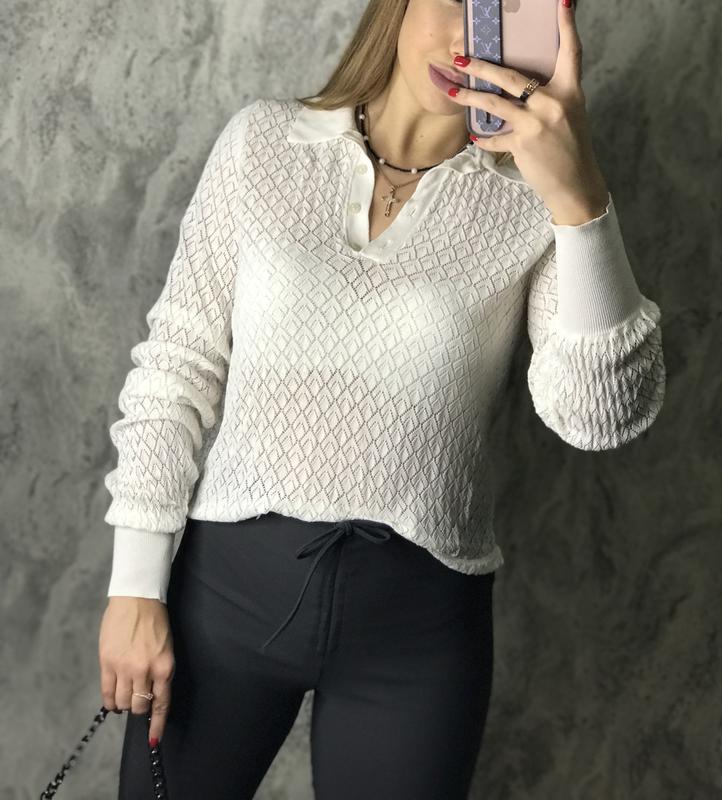 Актуальное поло ,нежная утончённая модель ,смотрится очень женственно и актуально Размер M ,надето на S Ткань хорошо тянется
