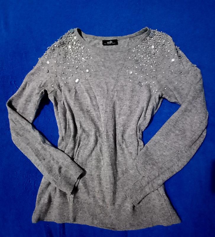Очень нежная, мягкая кофточка,украшенная камушками.Красивый светлый серый цвет.