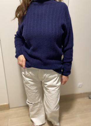 Джемпер шерстяний темно-синій подовжений м'яка ягкий і затишний. У складі також ангора, теплий і не колючий .Колір найбільш відображає перше і останнє фото.