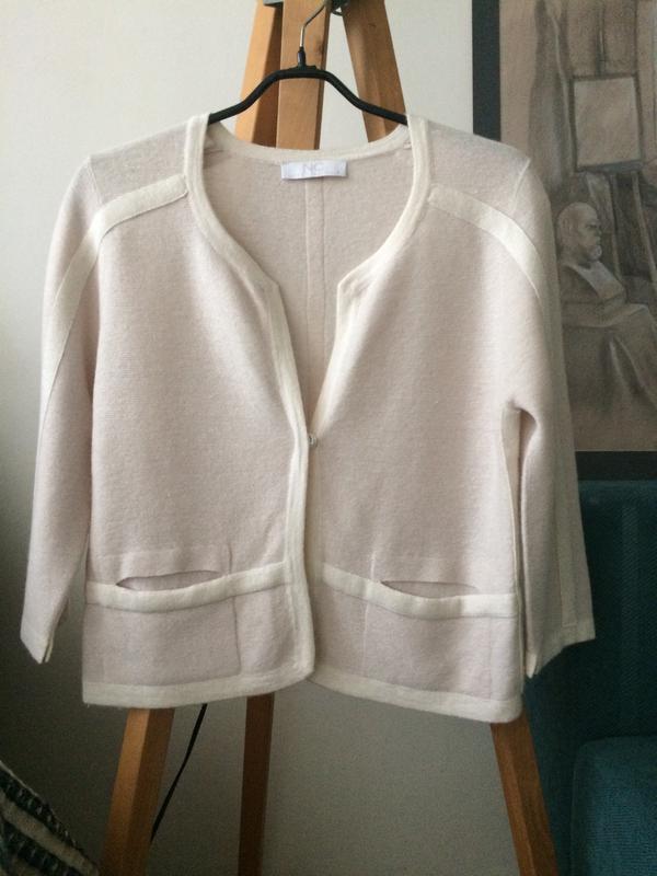 Очень красивая кофта-жакет от немецкого премиум-бренда, нежнейший кашемир, лёгкая, прекрасный цвет, очень комфортная, размер М-S, в идеальном состоянии по плечам37-38см, ПОГ-47см, длина кофты по спинке 50см, длина рукава 3/4-46см