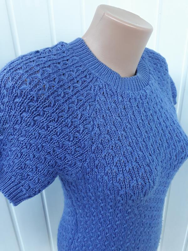 Гарна кофта з коротким рукавом, легка ажурна в'язка, стан дуже добрий. Пог42см, пот 42см, пот 38см, довжина 63см, рукав від шиї 27см. Заміри в спокійному нерозтягненому стані, дуже гарно тягнеться. .5.7.
