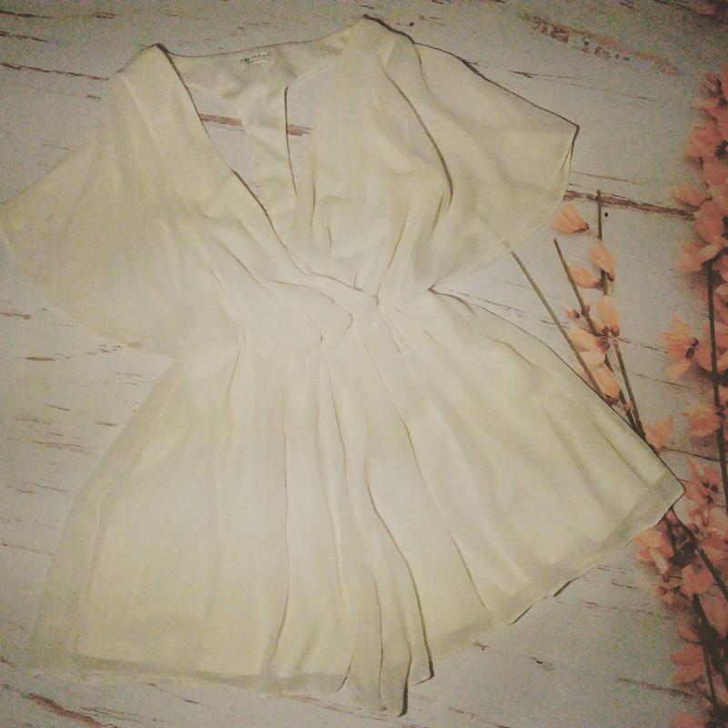 Очень нежный и лёгкий летний комбенизон. На спине по линии хребта присутствует тканевая полоса, отделанная бисером и камнями. Цвет шифона нежный кремовый