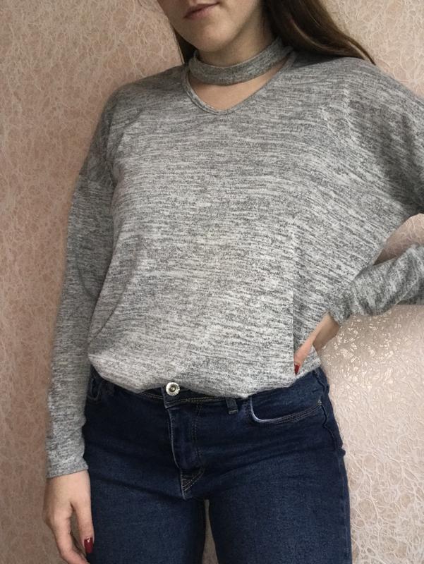 Серая кофта с вырезом. Размер универсальный 42-46