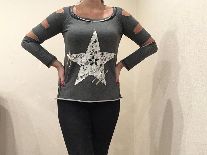 Серая кофта с рваными рукавами
