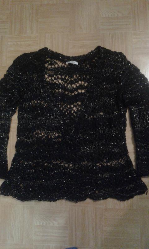 Оригинальная вязаная кофточка черного цвета с золотыми нитками, р. L-XL, Турция. Замеры: ПОГ 56 см, ПОТ 52 см, ПОБ 58 см. ( тянется ), длина 60 cм, длина рукава 64 см.