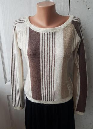 М'який,приємний,в смужку.Довжина-52см,ПОГ-50см,плече+рукав-70см.Вказаний р-р L. Буде на S-M.