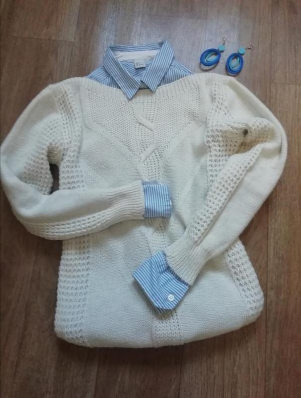 Свитер с красивой вязкой белого (ближе к молочному) цвета. Состояние нового, одевала 2 раза (разгружаю шкаф). Теплый. Отлично смотрится с рубашками. Замеры по запросу. Отправка Укрпочтой и Новой почтой