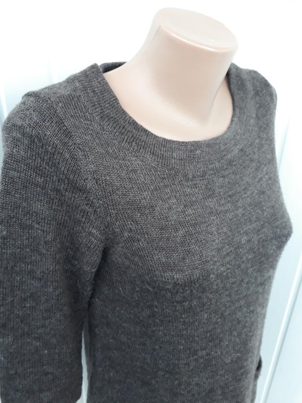 Тепла, приємна до тіла кофта-туніка з рукавом 3/4, спереді кишені-обманки. Стан ідеальний, в складі нитки 25% вовна. Плечі 35см, пог 45см, пот 47см, поб 52см, довжина 66см, рукав від плечового шва 44см. Заміри в спокійному нерозтягненому стані. .5.2.