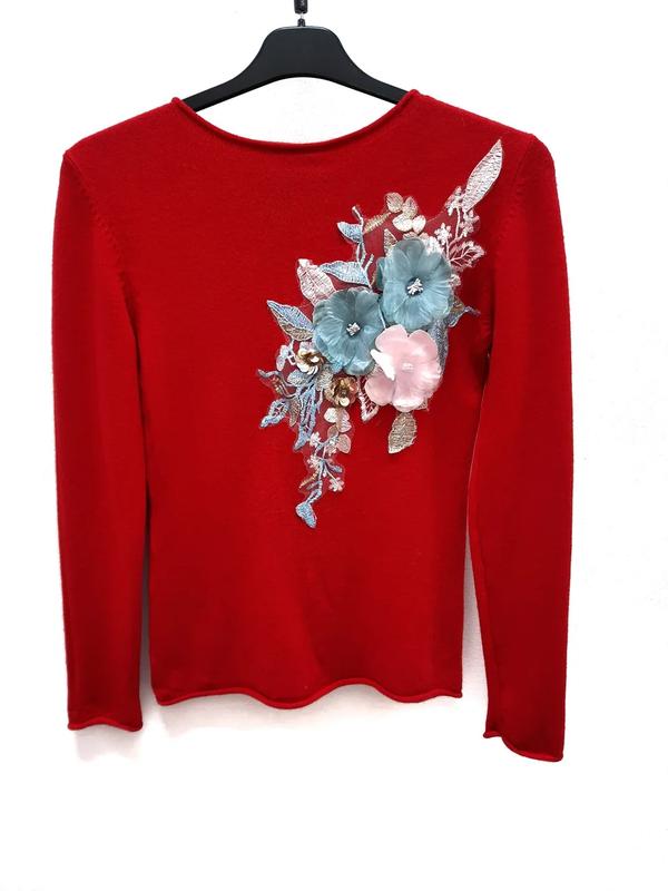 Красивый джемпер вишнево - красного цвета.Пог 43+.