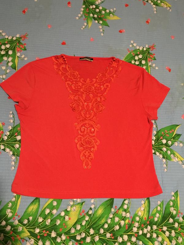 Дуже ошатна і красива нова кофтинка яскраво коралового кольору на розмір 50-52 з мереживом.