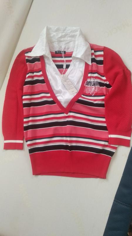 Новий джемпер з рукавом 3/4, комір блузка -обманка. Розмір реально на М. Додаткові фото і заміри запитуйте в директ 📩