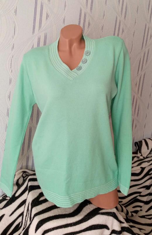 Теплая кофточка. Цвет мята. Длн 66 пог54до 59 рукав63 поб54до 52 сост новой.