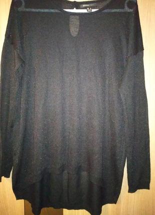 Лёгкая базовая кофточка свободного кроя, немного просвечивается, нить слегка переливается. ПОГ 57, рукав спущен, длина рукава с плечом 70, спереди кофточка короче- 52 см, сзади 70. Размер указан S, хорошо и на М.