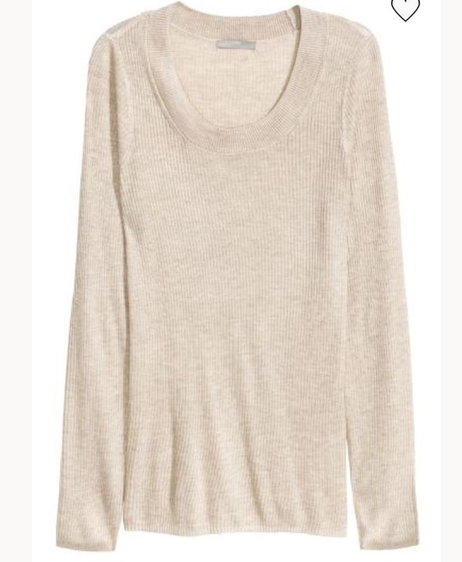 Облягаючий джемпер в'язки гумкою з м'якого матеріалу. На джемпері довгий рукав. колір бежевий меланж з вкрапленнями сірого ФасонОблегающий фігуру СоставВискоза 50%, Акрил 50% ХС розмір речі нові, з етикетками. розпродаж минулих колекцій