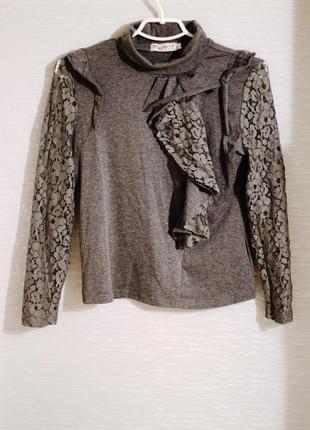 Стильный гольф с ажурными рукавами и жабо