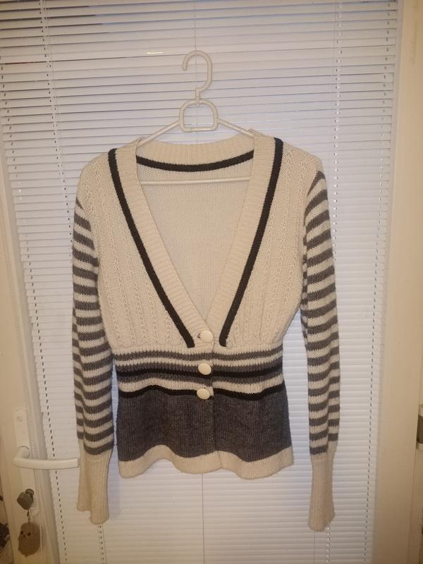 Джемпер чорно-білого кольору, застібається на пуговиці, може бути використаний як в класичному так і спортивному виді