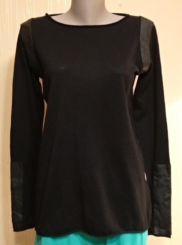 Чорний ,тонкий,приємний на дотик трикотажний джемпер з вставками. Голландський бренд. ПОГ-48см.Д. вироби-65см.Д.рукава-65см.торг доречний.