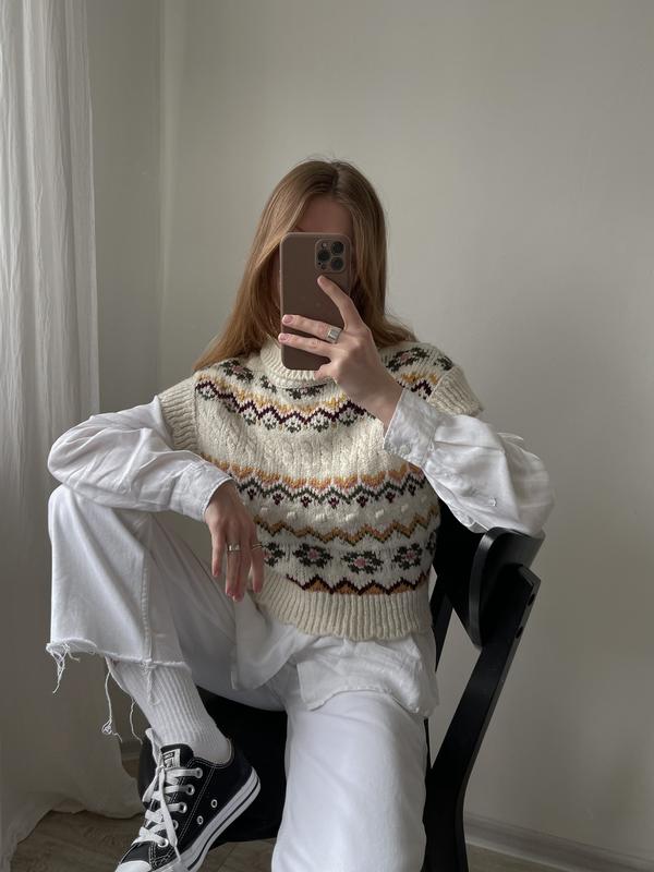 Жилетка Zara pозмір: S 66% acrylic, 24% polyester, 9% polyamide, 1% wool ідеальний стан, приємна до тіла довжина: 47 см ПОГ: 43 см