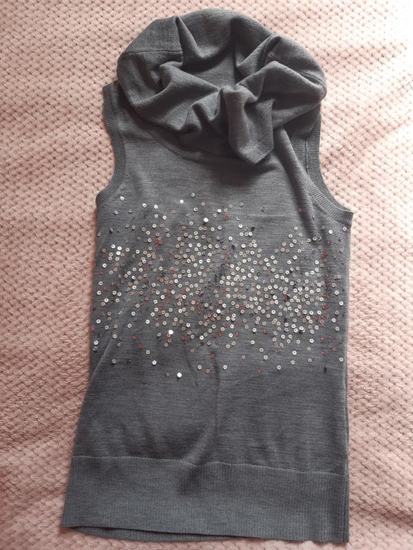 кофта без рукавів з паєтками розмір s, сіра, шерстяна