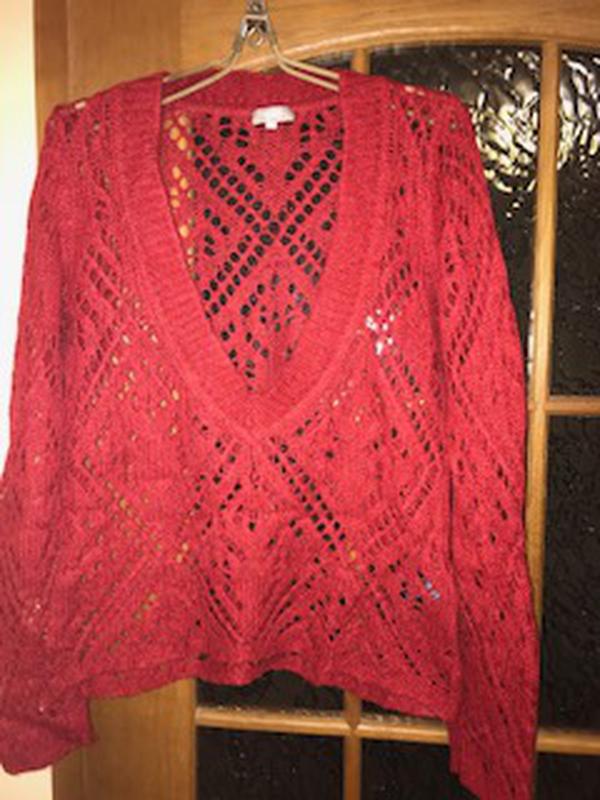 Красивая вишневого цвета кофточка.ПОГ 50см. Длина изделия 57см. Длина рукава 69см.