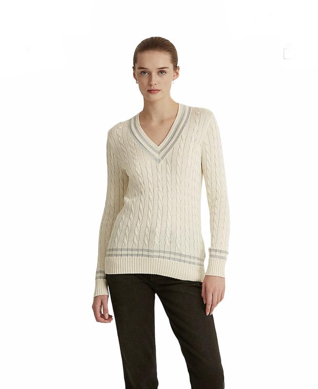 Красивий шляхетний пуловер від Ralph Lauren. L розмір. Колір молочний. На манжетах і по низу гумка. Декорований косами. Хороший склад. Пог 55(тягнеться 60) Побіди гумка 47(тягнеться 60) Довжина виробу 61 Довжина рукава 61 Глибина вирізу 15 Без торгу. Дивіться всі мої оголошення