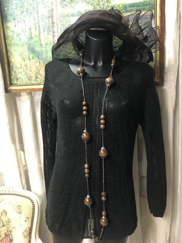 Стильный красивый легкий джемпер сеточкой от MEXX. Цвет-чёрный, длинный рукав, красивая горловина. Отличное состояние.Бирка с составом срезана, но по ощущениям-вискозина нить( очень нежная к телу). Размер по бирке L/XL. Замеры:длина-62 см, ПОГ-47 см, ПОБ-47 см, рукав от горловины-64 см. Хорошо тянется.