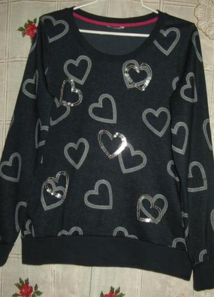 Шикарная кофта темно-синего цвета с серебристого цвета и блестками сердечками,объем груди-98см.,длина рукава-68см.длина кофты-67см.
