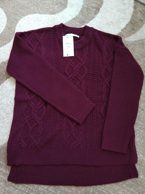 Теплий светр з округлою горловиною Імітація в'язки ПОГ 51 ПОТ 50 ПОБ 51 Спереду 60 довжина, а ззаду 66 Рукав по внутрішньому шву 42, від плечового шва 48 Згідно етикетки на розмір S, але більшомірить