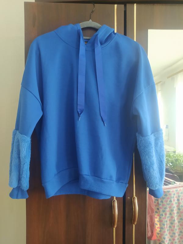 Кофтинка бренду Moda Ana яскравого синього кольору в ідеальному стані. Всередині на флісі, дуже тепла, з цікавими рукавами. На осінь - зиму підійде ідеально. Всі додаткові заміри при необхідності скину.