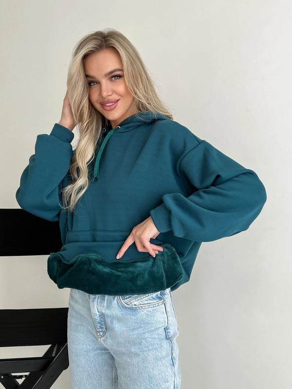 Новиночка!🆕 Мод 1249/12 Худи на МЕХУ! ✒Размеры - оверсайз (42-46) ✒Ткань -Трехнить Мех. Цвета: минт, джинс, темно-синий, бутылка.