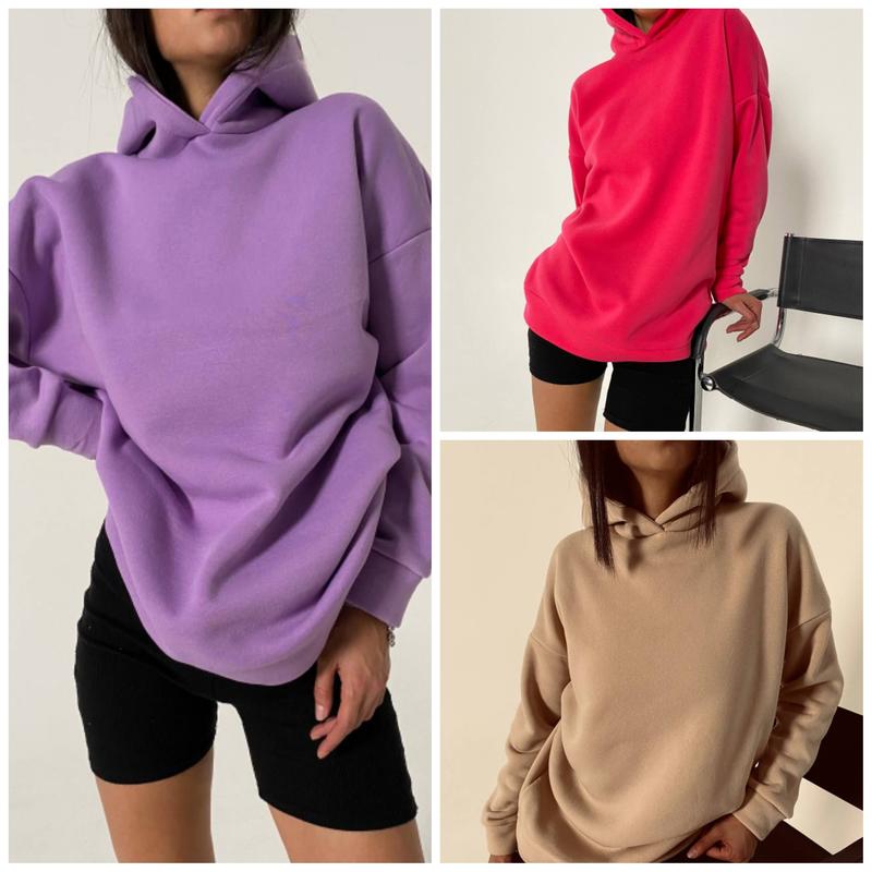 🕊НОВИНКА 🕊 Об'ємна худі з подвійним капюшоном. ▪️Модель: 189/1 ▫️Розмір: S-L (oversize) ▪️Колір: малина; беж; фіолетовий ▫️Тканина: тринитка фліс 📸фото в живу