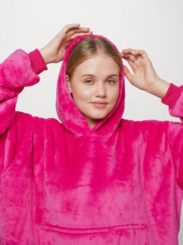 Домашнє оверсайз худі з капюшоном! Зігрій себе і своїх рідних! Універсальний розмір - дорослим, дітям, чоловікам і жінкам. Мягкий і приємний на дотик. Гіпоалергений - не викликає подразнення. В наявності 3 кольори: рожевий, червоний, фіолетовий.