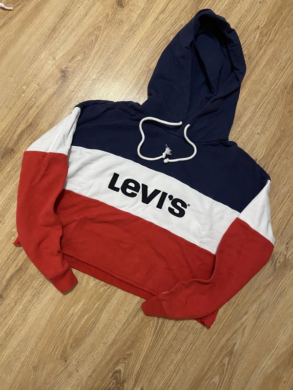 Жіночий кроп-топ від бренду Levi’s,дуже яскраве худі,трьох кольорове,великие лого на всю грудь,та маленький на рукаві.Стан від‘ємний,різмір по бірці Л,на тілі виглядає дуже класно.На доп інфою в лс