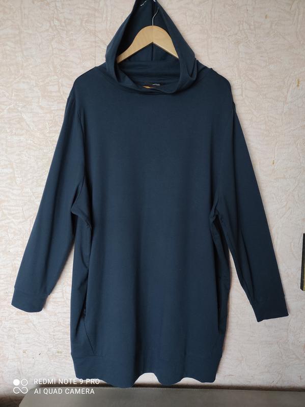 Якісна нове плаття-худи німецького бренду Тchibo,не утеплено. Колір темно-синій. Підійде на будь який розмір,в залежності від ступеня оверсайз. Состав: 96 коттон 4% еластан. Заміри: НОГ-71 НОТ-70 Довжина -92 Довж.рукава-67