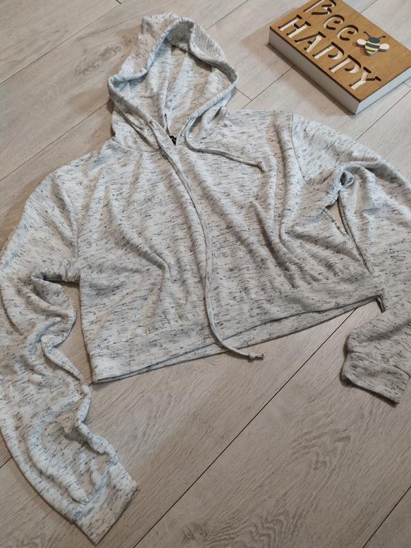 Укороченный худи от Boohoo. Размер указан 12. Капишон стягивается шнуровкой. Стан идеален. (18)
