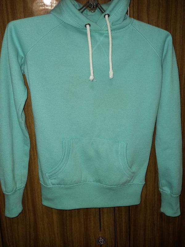 Цвет зеленый. Кофта на флисе. На кофточке есть катышки европейский размер-34 Английс-6 Наш приблизительно 40 размер. Замеры; ПОГ-47 см Длина рукава от плеча(рукав реглан)-68 см Длина кофты-53 см